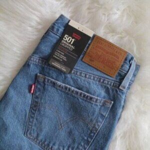 NWT Levi's 501 Original Jeans Cropped High Waisted Distressed Straight Leg