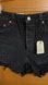 NWT Levi’s 501 High Rise Micro Shorts in classic black denim. Features a raw frayed hem, button fly, and signature Levi’s details for an edgy, vintage-inspired look. Perfect for summer streetwear or festival style. Size 29.