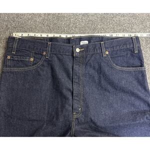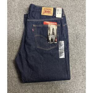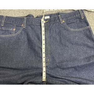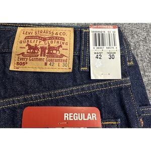 The product is a pair of NWT Levi's 505 Men's 42x30 straight leg jeans in a dark wash. Made of cotton denim, these regular fit jeans feature a classic 5-pocket design with a zip closure and Levi's logo accents. The blue color and 90s theme make them a versatile and comfortable option for any season. With a waist size of 42 inches and an inseam of 30 inches, these jeans from the Levi's 500 Series are a stylish choice for men looking for timeless American denim fashion.