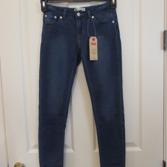 NWT - Levi's 710 Super Skinny Jeans - girl's sz 12 Reg. - Adjustable Waistband - Super Skinny From Hip to Ankle - STRETCH - - Approx. Measurements: (taken with item laying flat and un-stretched) waist 13" - hips 16.5" - rise 6.5" - inseam 27" - leg opening 4.75" - Material content: 73% viscose/25% polyester/2% elastane - Machine wash cold