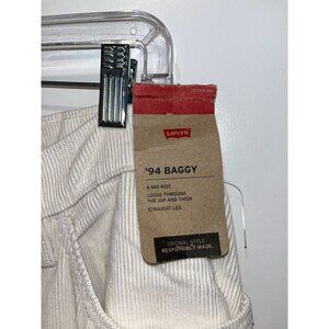 NWT Levis 94 Baggy Corduroy Pants Mid Rise Straight Leg Size 33 Cream Womens