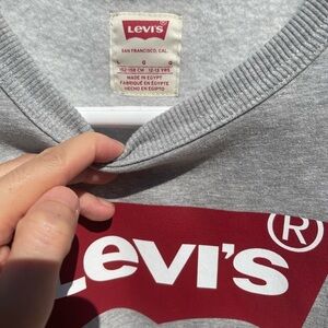 Stylish Levi's sweatshirt. Features gray fabric with red logo. Comfortable and trendy.
