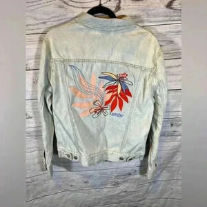 NWT Levis Denim Ex Boyfriend Embroidered Floral Trucker Jacket Size M Light Wash