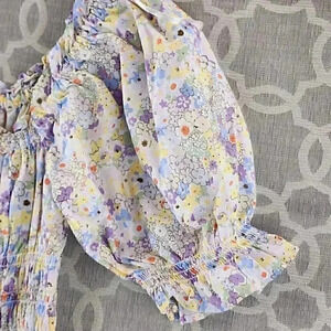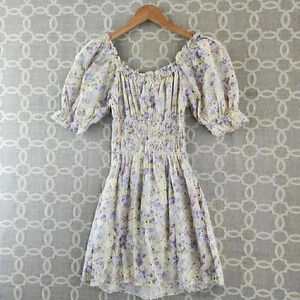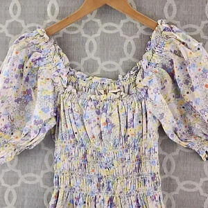 NWT Levi's Floral Prined Short Balloon Sleeve Off Shoulder Mini Dress S