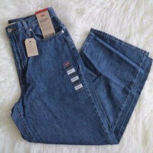 NWT Levi's High Rise Straight Leg Jeans Size 30 Cropped Denim Dark Blue Wash