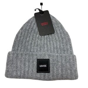 NWT Levis Levi's Jeans Brand Logo Womens Grey Winter Cuffed Beanie Hat Cap OSFM