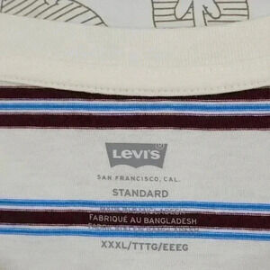 NWT Levis Mens Striped T-Shirt 3XL White With Brown & Blue Stripes 100% Cotton