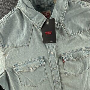 NWT Levi’s Pearl Snap Up Shirt Western Denim Pockets Lightweight Medium Blue