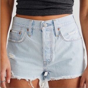 Levi's 501 Original Denim Shorts. Denim shorts with light wash and allover distressing.
