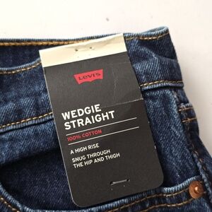 NW T Levi’s Premium Wedgie Straight Jeans – Dark Blue. Elevate your wardrobe with these stylish dark blue straight jeans. Perfect for any occasion, offering comfort and a sleek look.