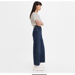 #Levis #PremiumDenim #HighRise #LooseFit #TaperedLeg #BaggyJeans #90sStyle #Y2KFashion #Wellthread #SustainableFashion #DarkWash #NWT #MomJeans #Streetwear #CasualStyle retro, vintage inspired,