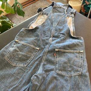 NWT Levi's slim cropped fit denim overalls. Features adjustable straps and multiple pockets. Perfect for casual wear. Reinforced pegs. Workwear vibe