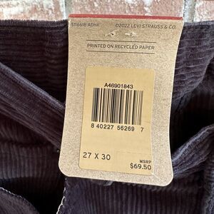 New! Women's size 27 x 30 Levis straight leg corduroy pants. Black color. Marked as irregular, but everything is in perfect condition.