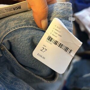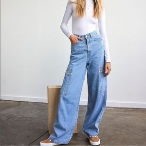 Brand new with tags. Stunning light wash high waisted utility loose fit jeans. These are so cute and trendy and can be worn so many ways! WOMENS size 27.