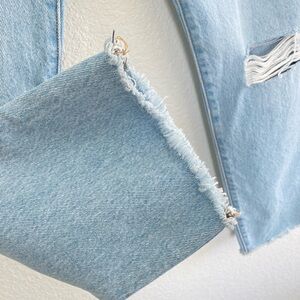NWT! Levi’s 501 Cropped Jeans. Light wash, distressed, raw hems, straight fit, & button fly. 100% cotton, no stretch. Size 27
