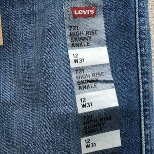 NWT Levis Womens 721 High Rise Skinny Ankle Jeans Size 12 Blue Denim Casual