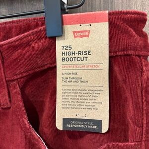NWT Levi's Women's 725 High Rise Bootcut Maroon Corduroy Jeans size 16 33x32
