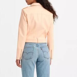 NWT Levi's Women's Faux Leather Belted Moto Jacket XS Peach Pink