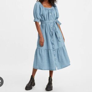NWT Levi's Women's Midi Denim Shirt Dress Mika Balloon Short Sleeves