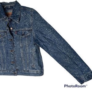 New With Tags Levi’s Women's Night School Original Trucker Jacket In A Size Medium ! White Paint Splatter Detailing !