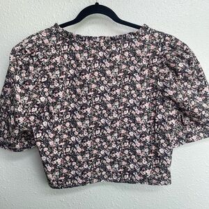 NWT Levi’s black floral pattern 100% cotton cropped blouse, size large, see measurements below!