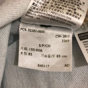 NWT .Levi's color blocking denim jacket. White panel in front and back of jacket. Red tag on pocket, "levi's" not printed on this tag.