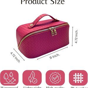✅【Large Capacity】The size of the cosmetic bag is 9.45x5.31x5.31inch. The large capacity makeup bag is designed with multiple divisions and compartments. Our makeup travel bag is made of premium soft PU leather. The PU inside lining makes it incredibly easy to clean, even when faced with makeup stains, ensuring your makeup bag stays in pristine condition.