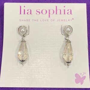 NWT Lia Sophia Lorelai dangle earrings. Silver dangle with Clear stones & pearls.