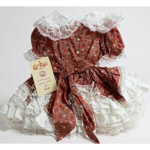 NWT Lid'l Dolly's Burgundy Floral Southern Belle Ruffle Pageant Dress Lace 3T
