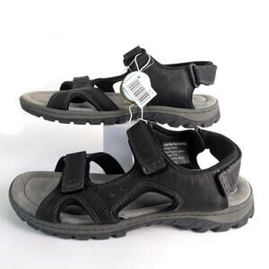 NWT Lidl Footflex Men's 11 Comfort Adjustable Strap Black Sandals Leather Summer