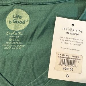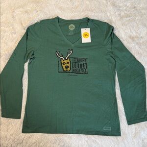 NWT, Life Is Good Green Tee with Reindeer Graphic, size Large
