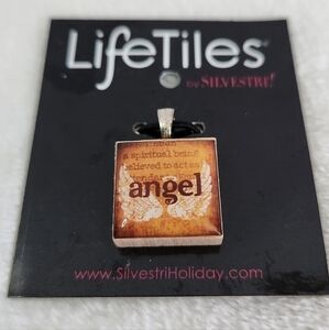 NWT Life Tiles For Silvestre By Demdaco Angel Necklace Pendant. Wooden tile, silver toned loop, "angel" with spiritual beliefs inscriptions & angel wings. Made in the USA. Not intended for children under 6 years of age. Approximately .75" square & .25" thickness. Brand new in original packaging! 2 available!