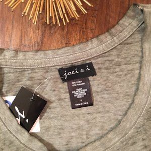 Super cute Joei & I short sleeve tee shirt in a subtle green heathered fabric. Embroidered and graphic “life is Better by the Campfire” on front. Size small. Flat lay: 18.5 pit to pit; 24.5” length. Flattering round hemline. 55% cotton 45% polyester. NWT!