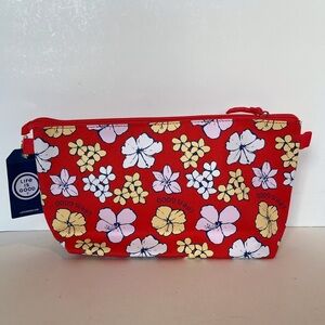NWT A Carry-All Can Tropical Flower bag from Life is Good in Mango Orange. H 7.5in x 13in, zippered top closure and a zippered front pocket. Made from recycled material. Excellent condition. To spread the power of optimism!