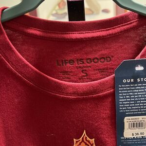 Life is Good red t-shirt with a simple design. Comfortable and stylish. brand new without tags attached. From a smoke free home Length 24”, pit to,pit 19”.