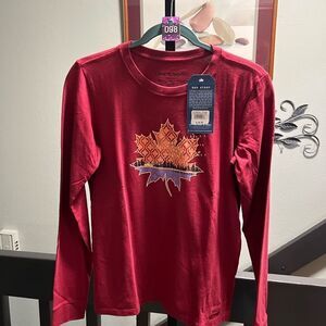 NWT Life is Good Red T-Shirt With Leaf Size Small #98