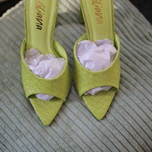 NWT Light Green Snake Print Pointed High Heel Sandals