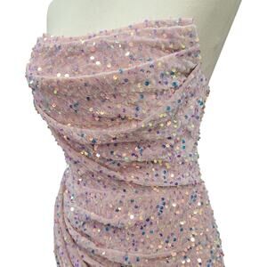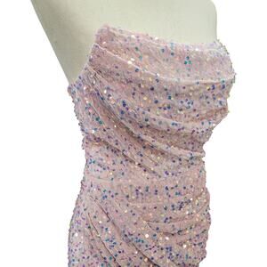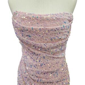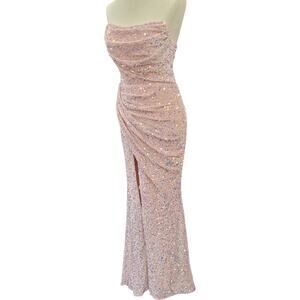 NWT Light Pink Strapless Sequin Evening Gown with Corset Back on Velvet Fabric