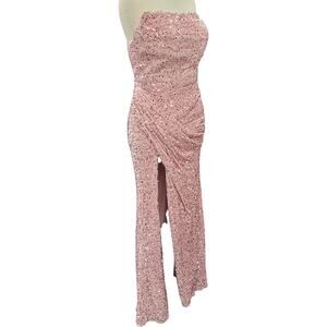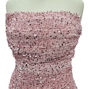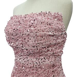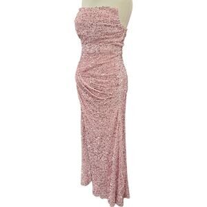 NWT Light Pink Strapless Sequin Evening Gown with Corset Back on Velvet Fabric