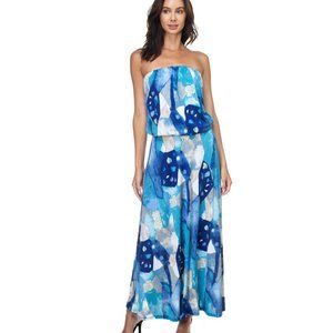 NWT Light Summer Strapless Blue Maxi Dress By Ariella