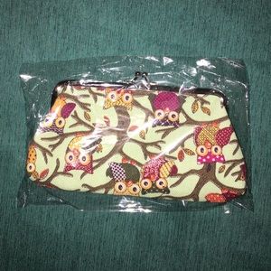 NWT Light green, adorable coin purse. Never been used. Canvas outside with multi-colored owls. Pretty cornflower blue flower pattern on the inside. 7.5" W X 4" L