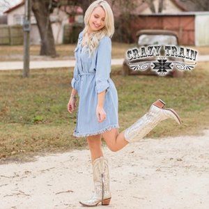 NWT Lightweight Denim Raw Hem Belted Button-down Dress