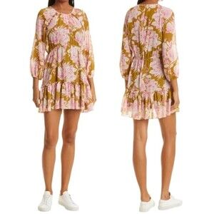 NWT Likely Dress Olive Green & Pink Floral Hadi Long Sleeved Ruffled Dress Size 8