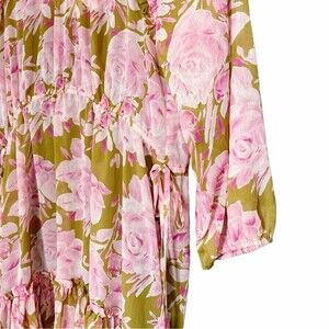 NWT Likely Dress Olive Green Pink Floral Hadi Long Sleeved Ruffled Dress Size 8