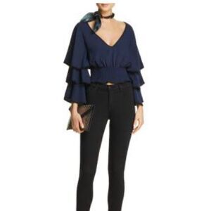NWT Likely Sloane Top Navy Blue Size XS Tiered Sleeve Cropped