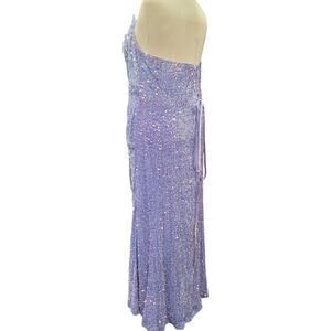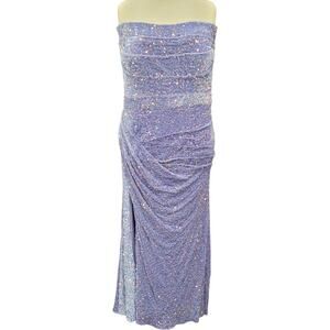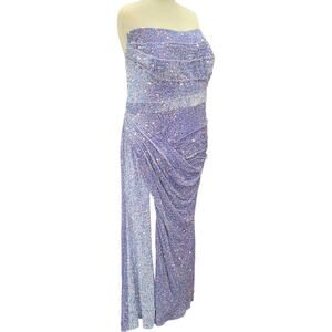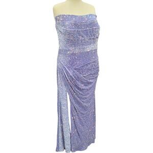 NWT Lilac Purple Strapless Sequin Evening Gown with Corset Back on Velvet Fabric