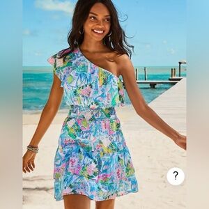 NWT Lilly Pulitzer Addilyn Pop Up Wish You Were Here One Shoulder Ruffled Dress