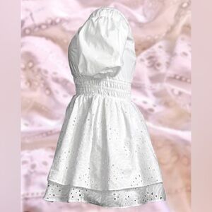 “All eyes are on eyelet for summer dressing, and Lilly Pulitzer's Axelle Eyelet Romper makes the perfect all-in-one outfit. This skirted romper is finished with short puff sleeves.”