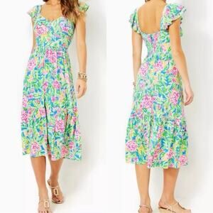NWT Lilly Pulitzer Bayleigh Flutter Sleeve Midi Dress Size 6 Multi Grove Garden