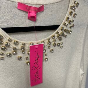 NWT Lilly Pulitzer Bejeweled Odetta Sweater in Coconut Off White Womens Small